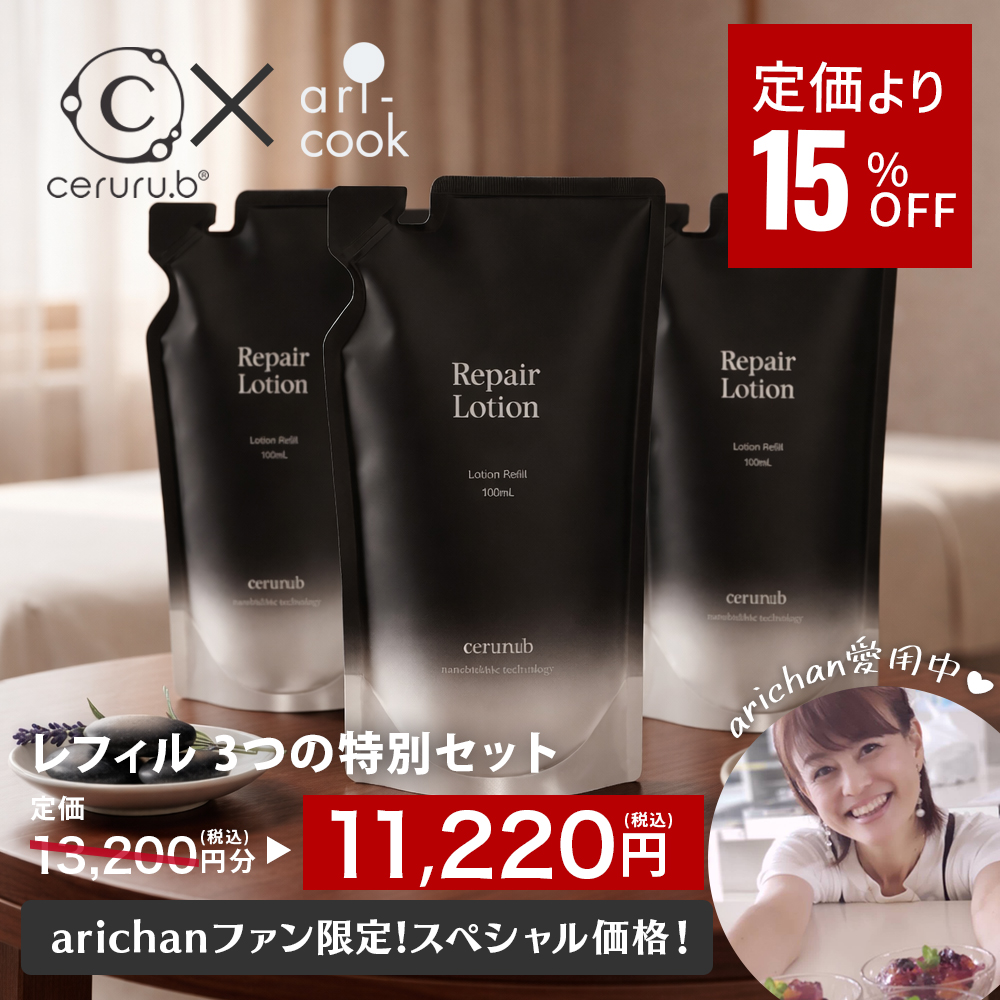 人気のリペアローションをたっぷり使える!詰替え用レフィル3本セットを15%OFFでご用意した特別セット♪