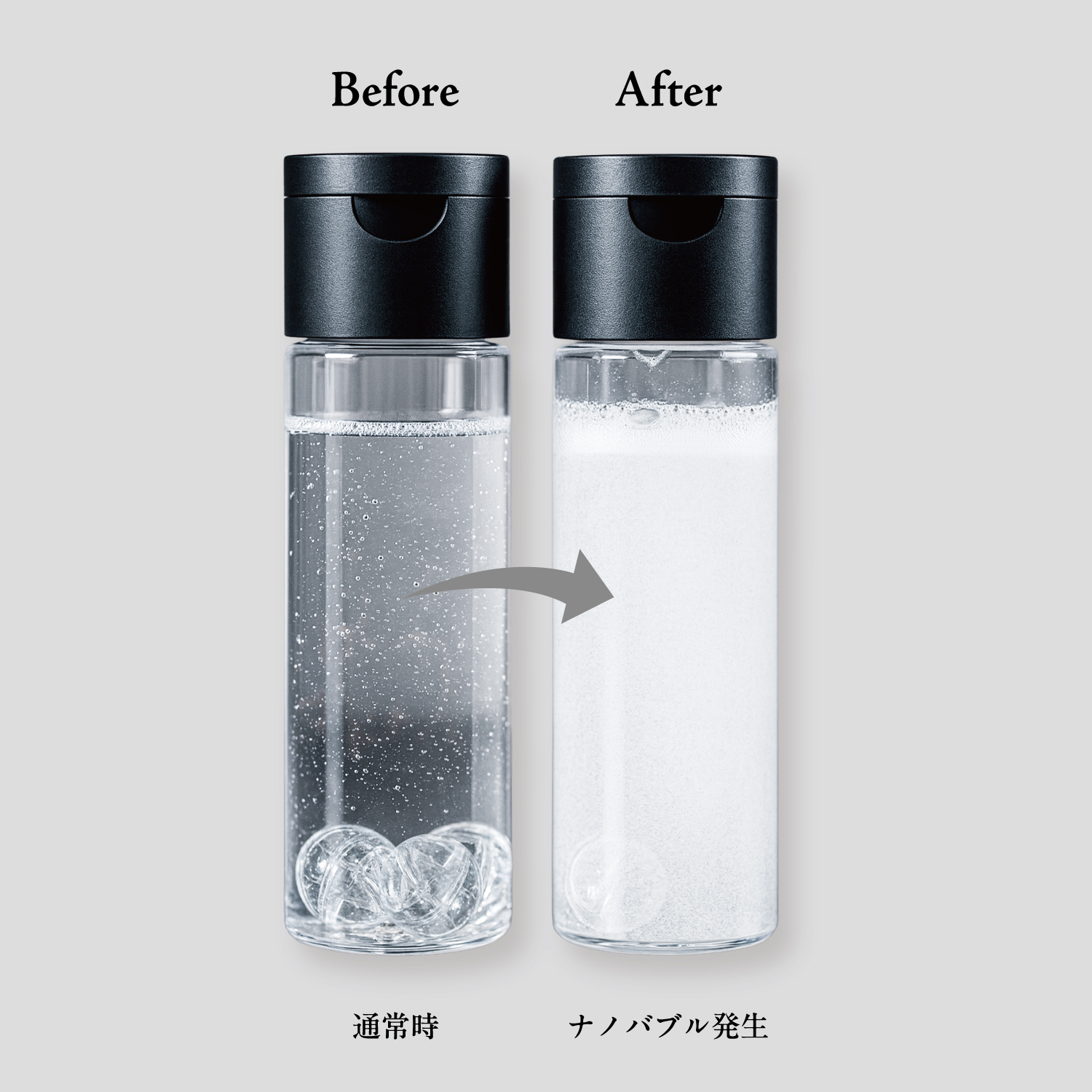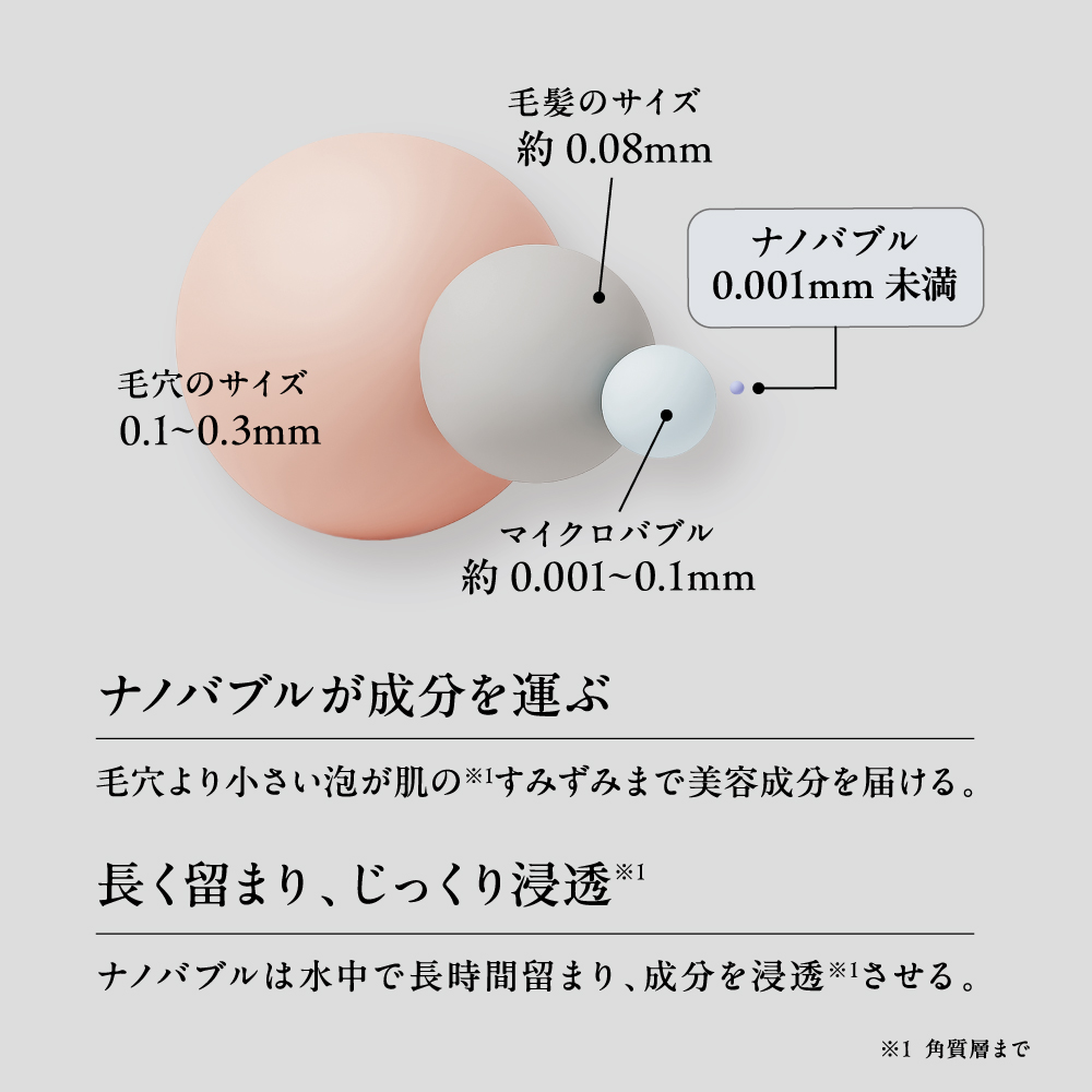 ┗容器内の3つの球体がナノバブルを発生させ、美容成分が浸透※しやすくなります。