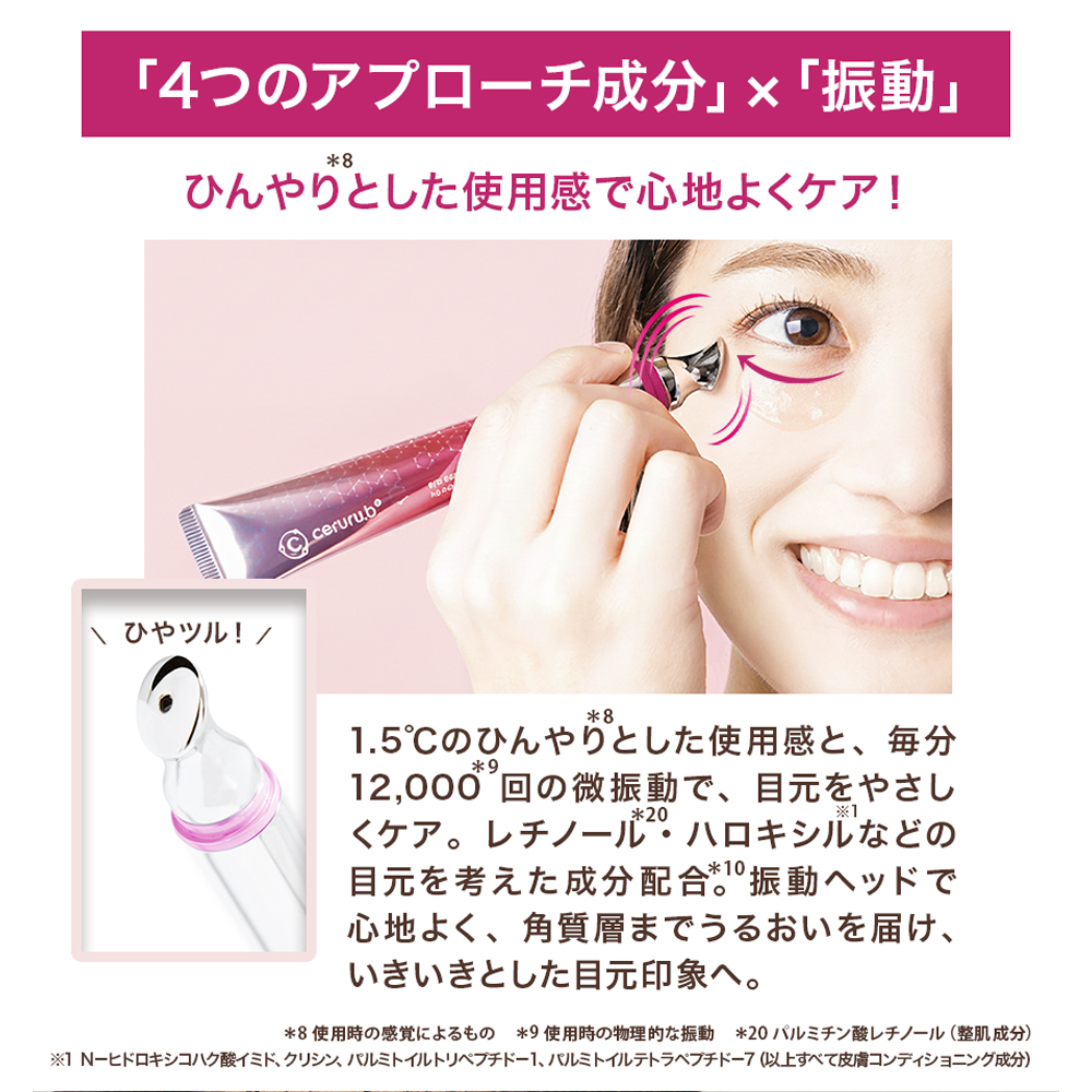 ※9 本項は目元ケアの一例を示したものであり、マッサージ効果や血流改善等を保証するものではありません。