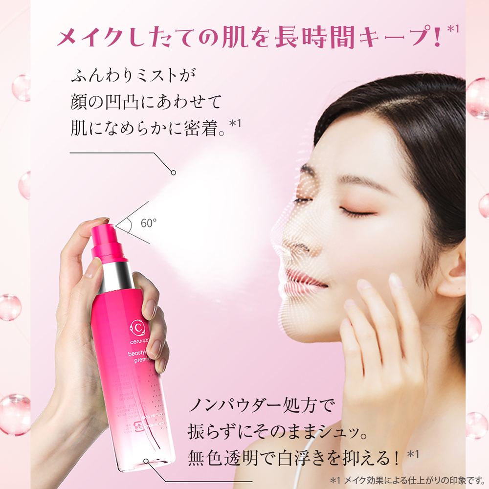 メイク後の肌を包み込むように整える、仕上げ用の美容ローションミスト。 メイクの仕上がりを守りながら、肌へのうるおいケアも考えた処方設計です。