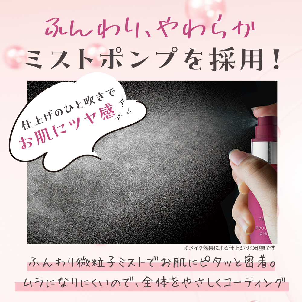 微粒子ミストがふんわりと広がり、肌にムラなくなじみます。